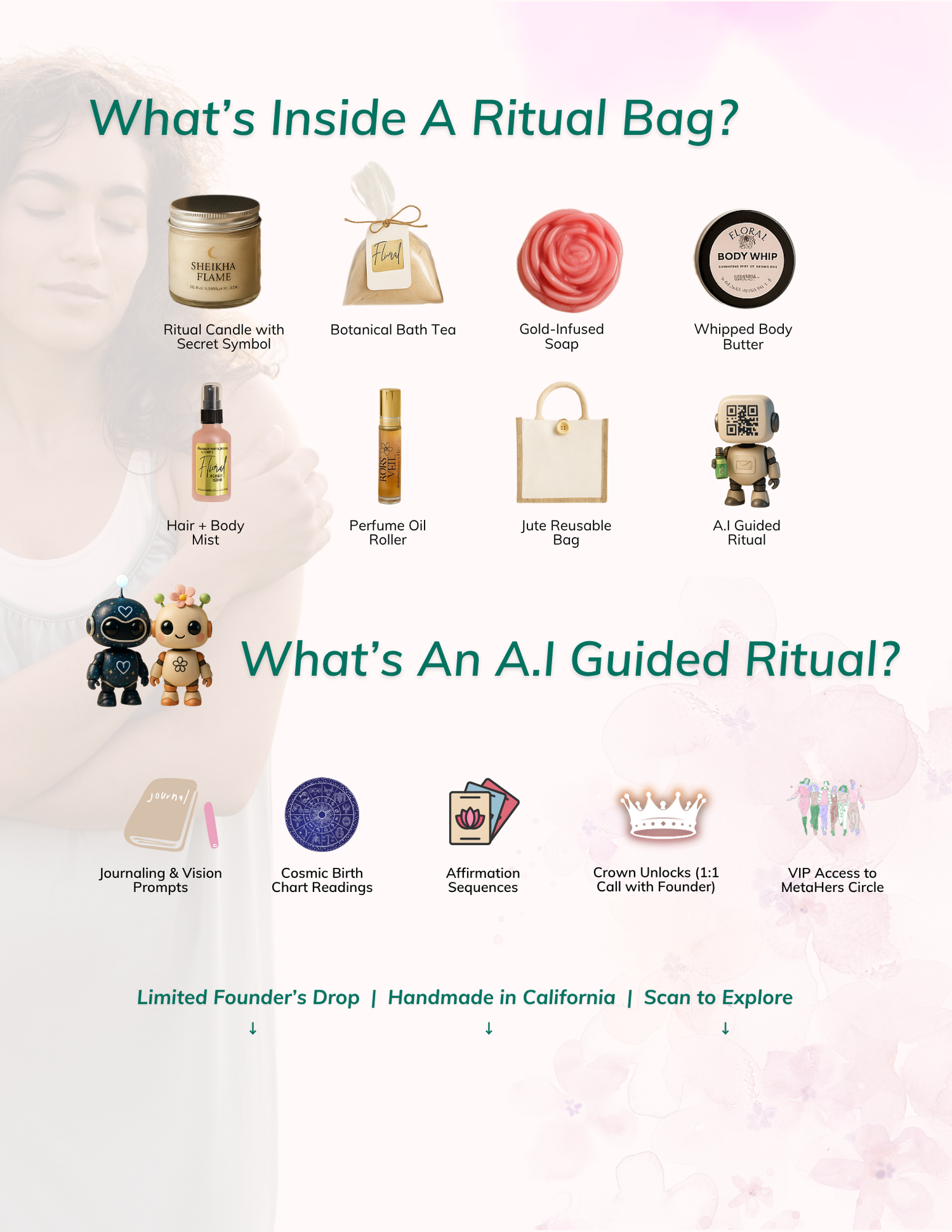 Drop 001 is more than a product. It’s a movement in a bag — where beauty meets blockchain, rituals meet revenue, and self-care meets self-empowerment. Only 18 exist, each one ready to welcome you into our small, intimate circle of women who are shaping the future together.